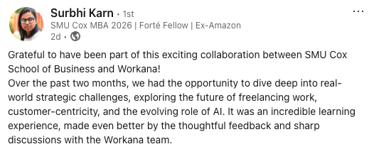 Over the past two months, we had the opportunity to collaborate with a group of brilliant MBA students from the SMU Cox School of Business on a strategic project for Workana.